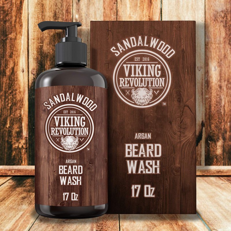 Viking Revolution Beard Wash Shampoo w/Argan & Jojoba Oils - Softens & Strengthens - Sandalwood Scent - Beard Shampoo w/Beard Oil (17 oz Shampoo)