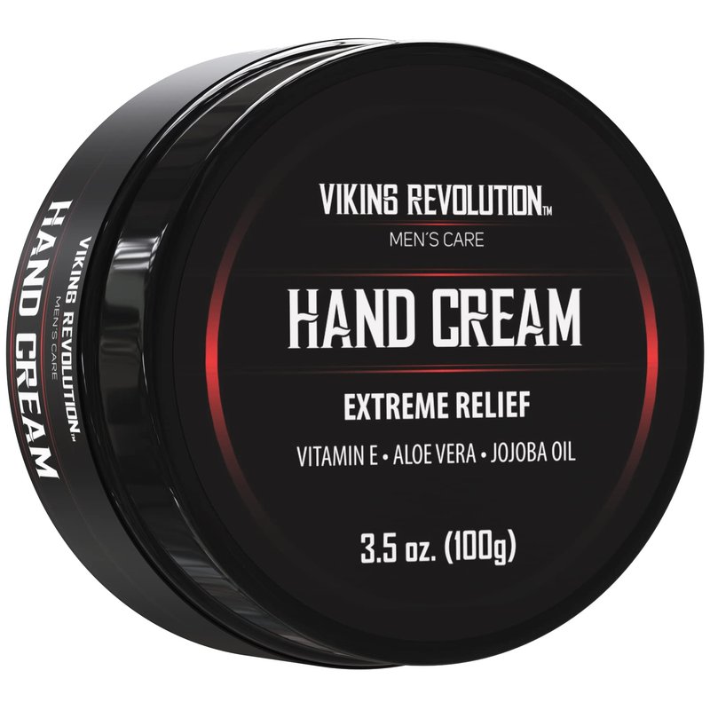 Viking Revolution Mens Hand Cream for Men - Hand Cream for Dry Cracked Hands Repair Cream - Dry Hand Cream for Dry Hands Balm - Aloe Vera Dry Hands Treatment Skin Moisturizer with Vitamin E (3.5oz)