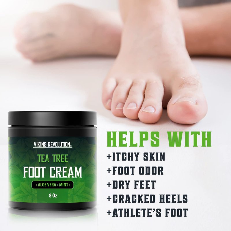 - Foot Cream for Dry Cracked Feet Helps Eliminate Dryness and Irritation - Keep your skin smooth and soft with our foot cream for dry feet. The Viking Revolution Foot Repair Cream has soothing ingredients, such as tea tree oil, aloe vera, mint, and centella asiatica, that nourish the skin to keep it hydrated.
