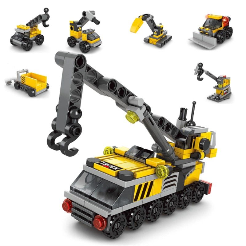 Vilbocr 6 in 1 Children Crane Toy Building Blocks Toys for 4+ Years Boys Kids Gift Idea Toy Construction Truck Toys 142Pcs-Compatible with Other Building Block Toys (Crane Truck)