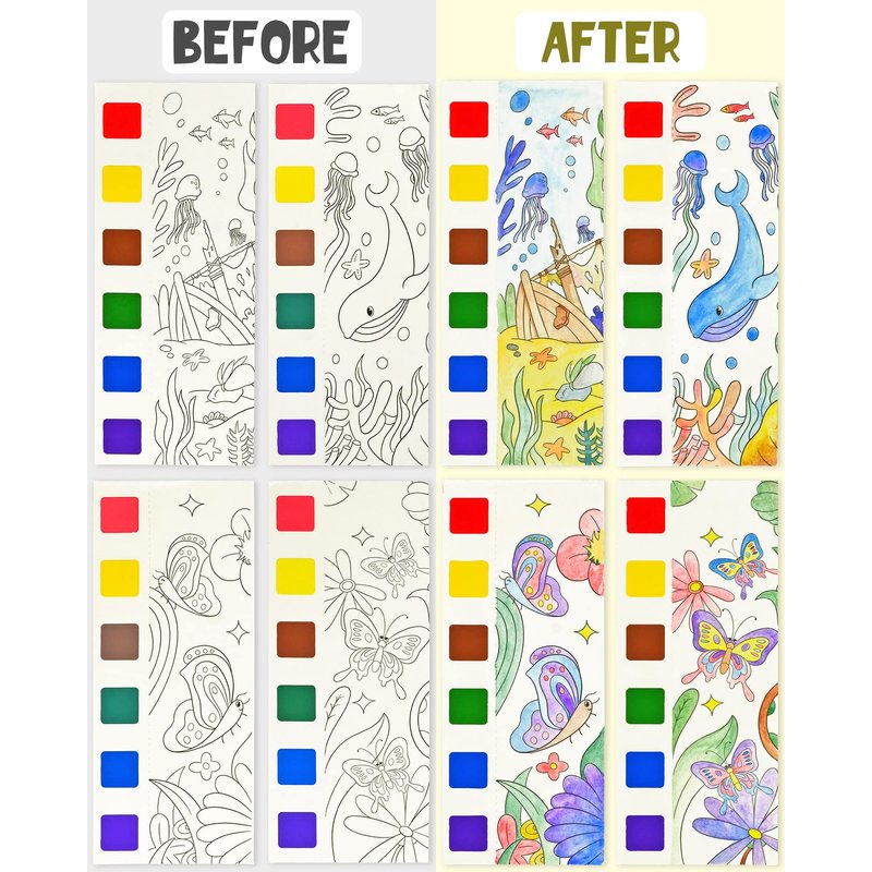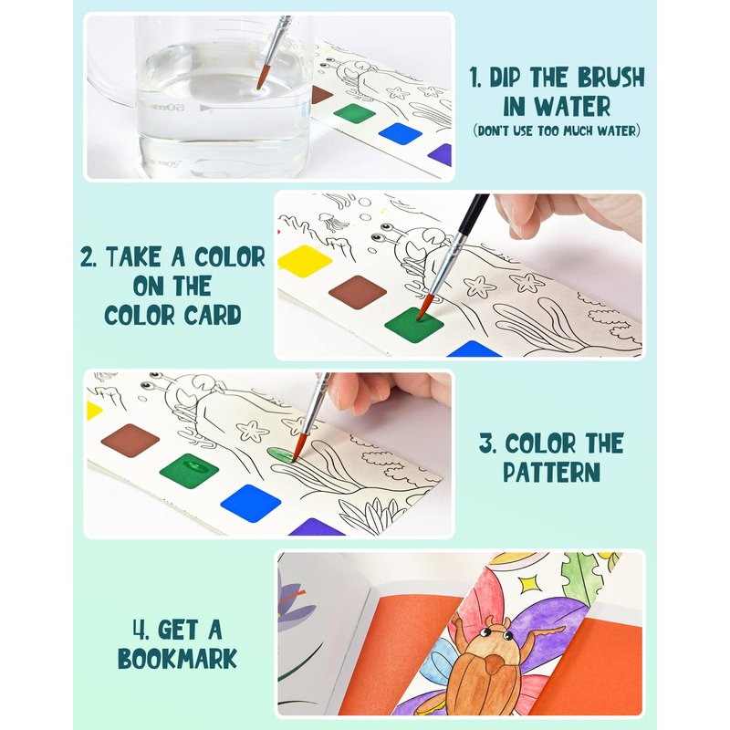 - DIY Group Activity: Water paint book with fun images and thickened cards, children can create their unique bookmarks, great game is for kids birthday party or classroom activity