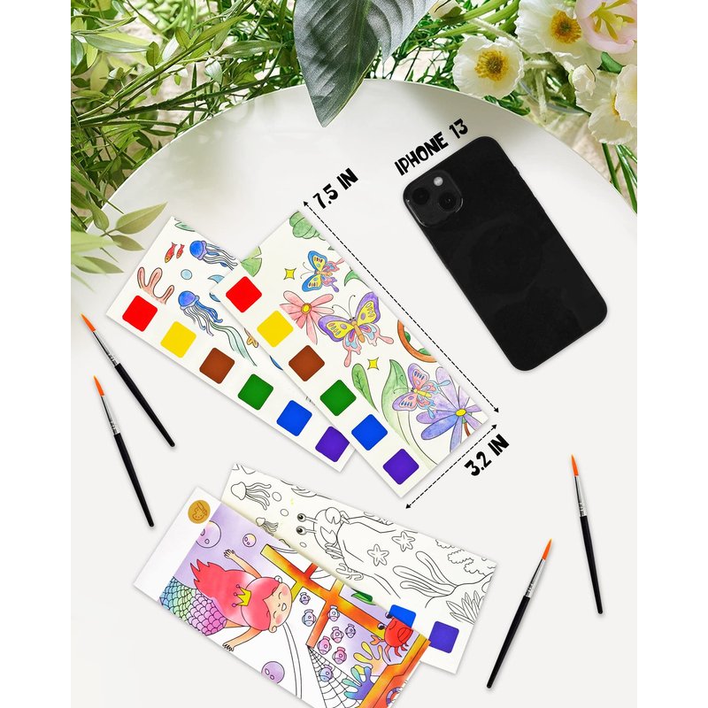 Vileafy Painting Kit for Kids Ages 4-8 Years Old, Paint Party Favors -Paint with Water Books for Toddlers -24PCS Pocket Watercolor Painting Bookmarks(24 Cards+24 Brushes)