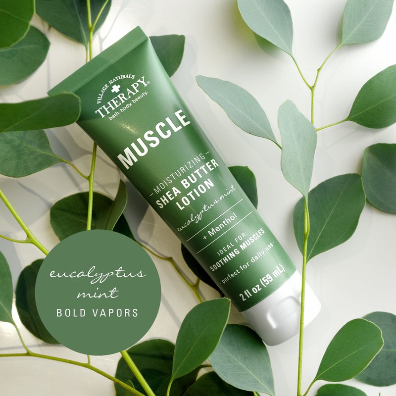 Village Naturals Therapy Muscle Shea Butter Lotion, Eucalyptus Mint Scent, 2 fl oz, Pack of 6