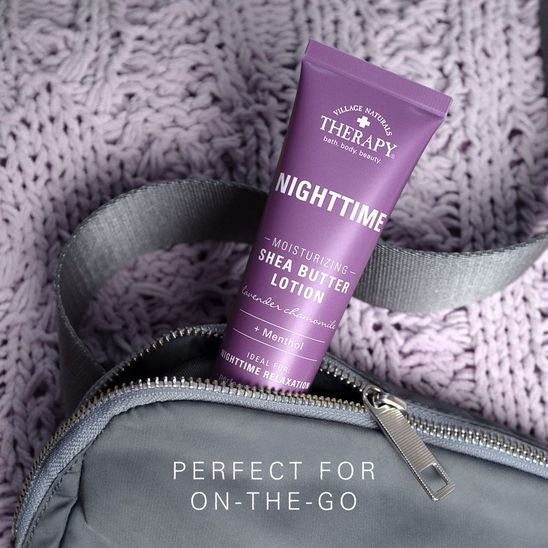 Revitalize and restore your body with Village Naturals Therapy Nighttime Hand & Body Lotion. Made with Shea Butter, Aloe and Menthol, this moisturizing blend is ideal for soothing the body before bed, while keeping the skin hydrated and soft. The lotion is infused with key extracts that deliver a calming Lavender & Chamomile scent ideal for nighttime relaxation and perfect for daily use.