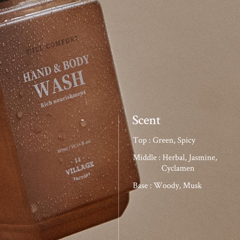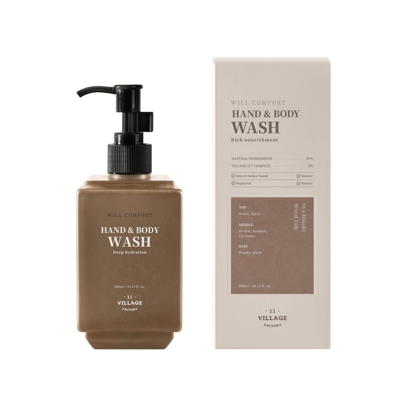 VILLAGE11FACTORY Will Comfort Hand and Body Wash (300ml/10.14 fl.oz.) Premium Home Spa, Aromatherapy, Hinoki Essential Oil, Nourishing Shea Butter and Jojoba Oil