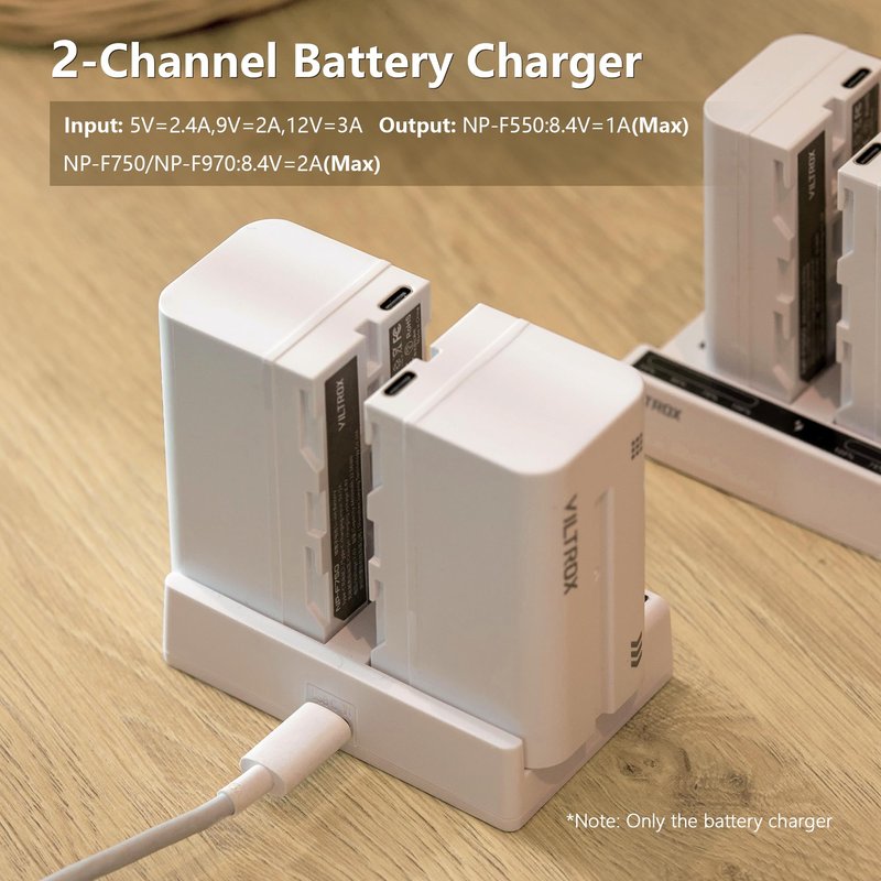 - Intelligent fast Charger: The double charging output is 8.4V/2A to quickly charge one NP-F battery or two NP-F batteries at 2A. In order to achieve the fastest charging speed with dual channels, it is necessary to use an AC fast charger with 12V/3a output such as chargers above PD45W, or PD60W.