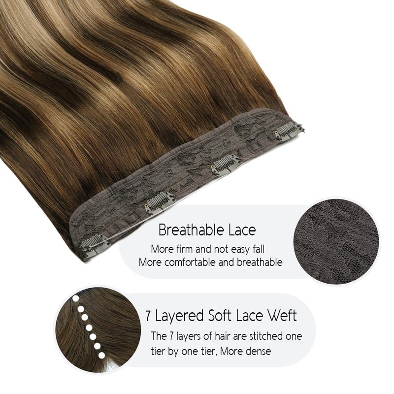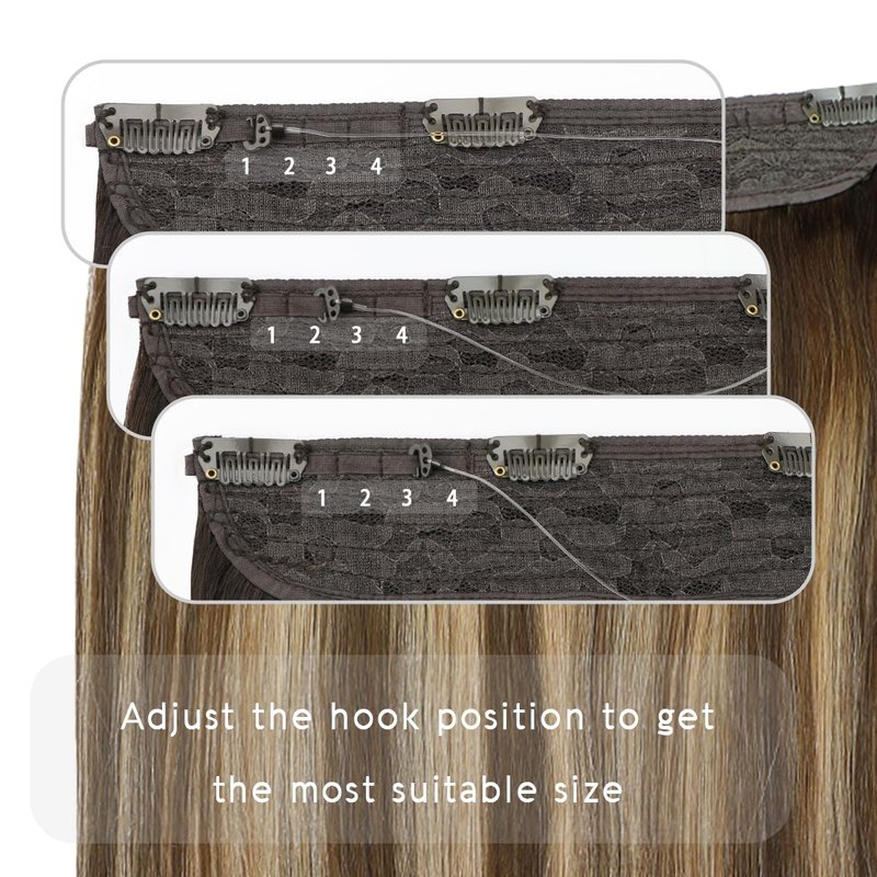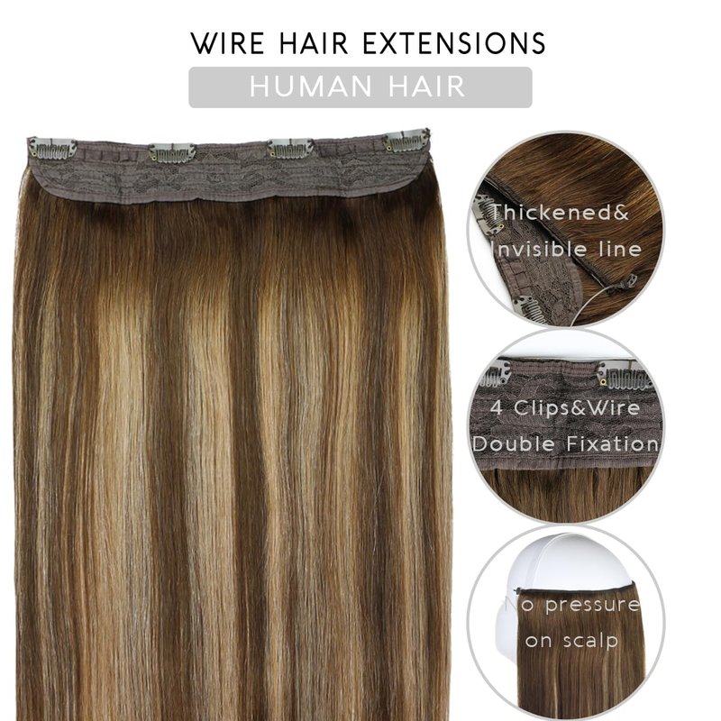 - 【Remy Human Hair Extensions Quality】Wire hair extensions are made of 100 percent real human hair, can be dyed, strengthened and curled as you want. It can blend so well with your own hair with the adjustable invisible transparent wire, and the stainless clips on the lace weft. Adjust size by tightening or loosening the standby wire, they will not move when you shake your head, More stable and No pressure.
