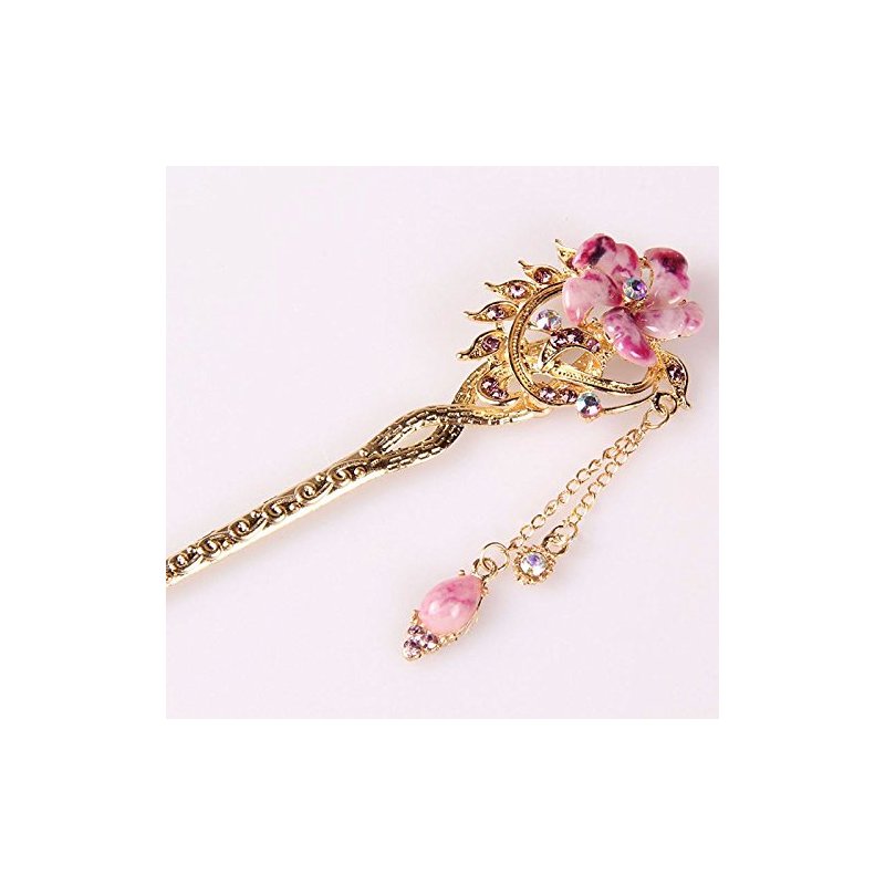 - Vintage Chinese Women's Crystal Flower Lavender Hair Stick