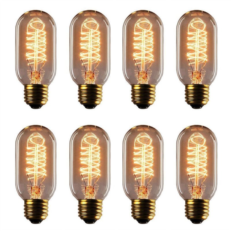 - SPECIFICATIONS FOR THE BULBS: 8 Pack of vintage filament bulbs squirrel cage, nostalgic reproduction,E27 or E26 base 25W 110v Dimmable glass.These dimmable CLEAR GLASS vintage Edison bulbs provided a much brighter and more useful light (also can be dimmed by the dimmer switch, but the dimmer switch are not included).