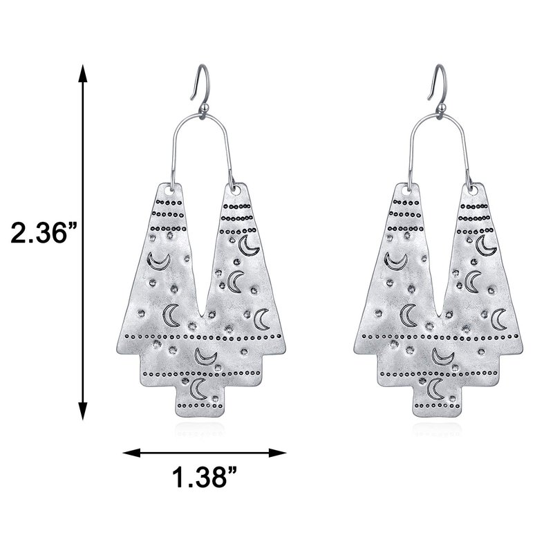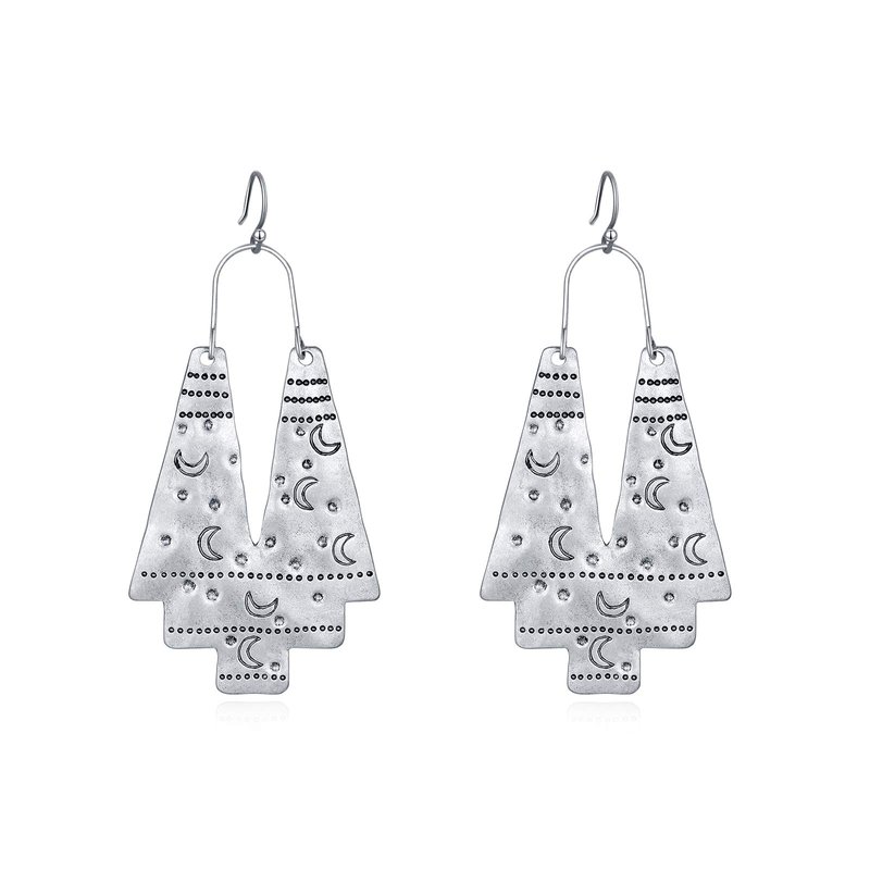 Vintage Ethnic Tribal Earrings Antique Carving Moon Sliver Fashion Boho Hook Dangle Earrings Gifts for Women Girls