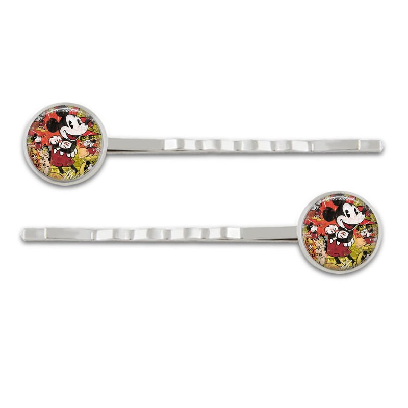 1pair of hair clips featuring an image of a mouse