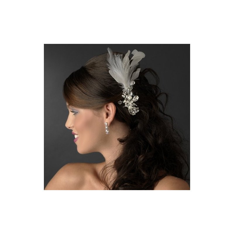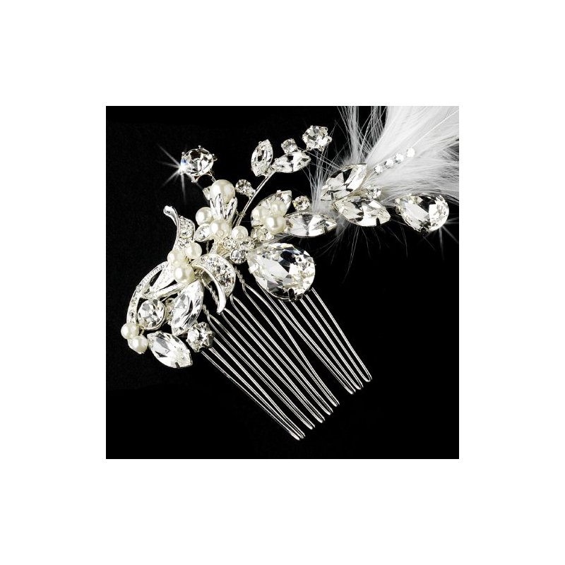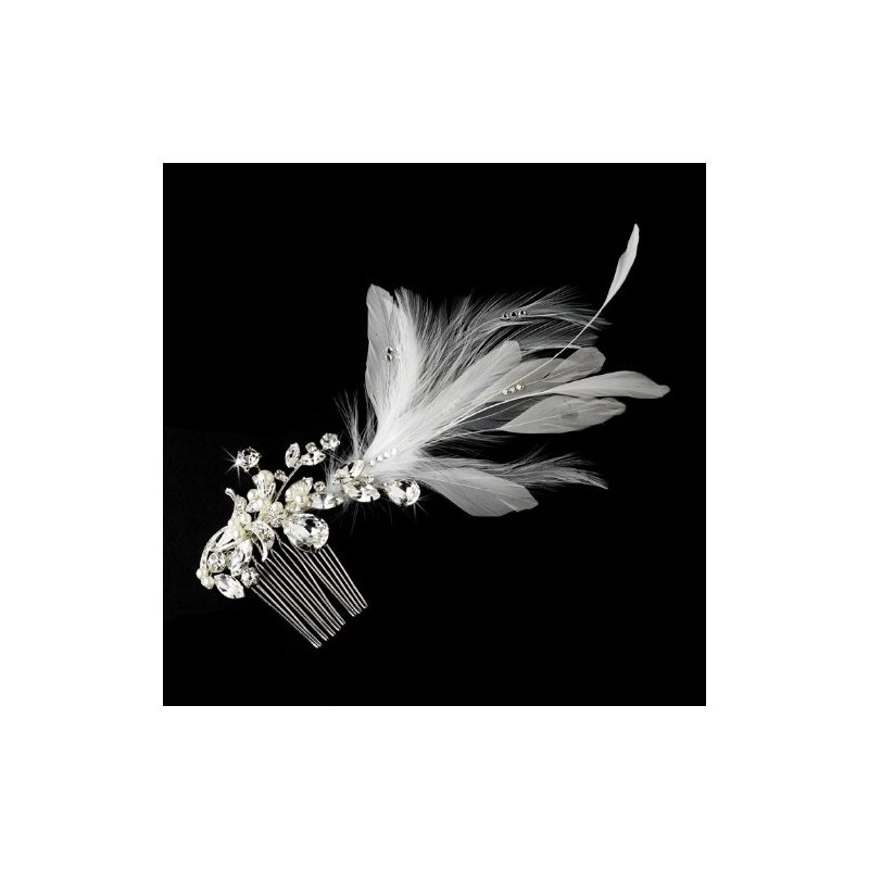 Vintage White Feathers & Crystal Wedding Bridal Special Occasion Hair Comb