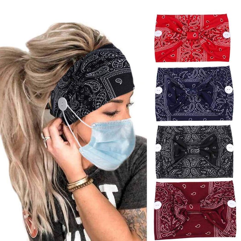 Vinyl Quote Me 4 Pieces headbands with buttons mask Boho yoga fashion Headband knotted elastic button headband for face mask nurses women masks head bands stretch wide