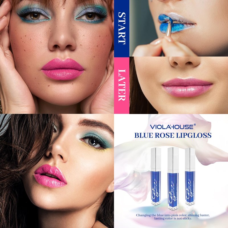 VIOLA HOUSE color changing lip gloss, blue in pink PH lipstick, tinted, waterproof, long lasting gloss rose lip gloss. 5ml/0.17fl oz (freshcolor)