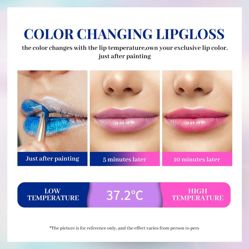 - 【2 Color Changing Lip Gloss】It is color changing lip gloss, blue changed to pink. Can according to the temperature and humidity of lips, adjust the depth of lip color. Glossy shine, durable color is not sticky.