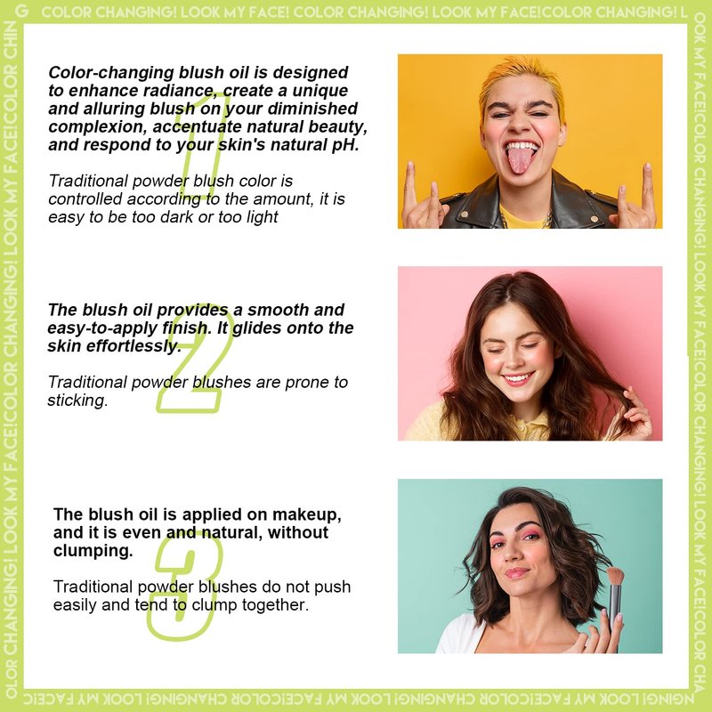 - 【Easy to Apply Cheek Blusher】Liquid color changing blush an easy-to-wear and versatile formula that is great for warming up and smoothing all skin tones.Dip a little color changing blush onto your face and blend upwards with your fingers, facial brush, or wet beauty sponge.This liquid color changing blush reacts to your skin's ph level to give you your own unique colour, as if it were tailor-made.