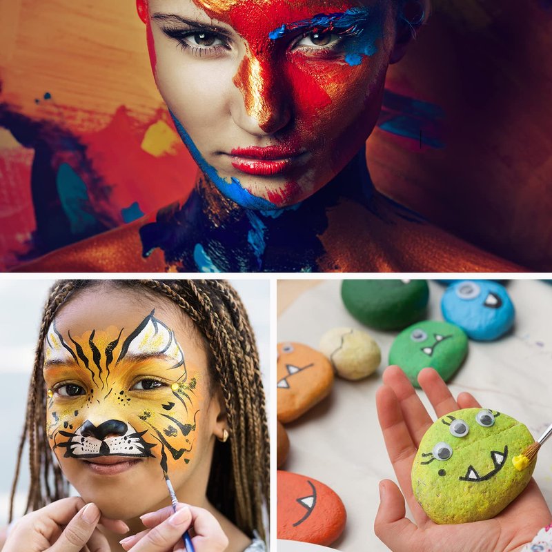 - 【6 Colors Face Body Painting】Body paint set includes 6 colors, which are vivid and vibrant to meet all your creative needs and make your makeup shine brilliantly at the face painting party.