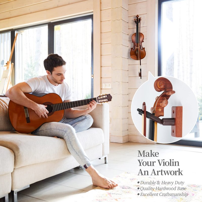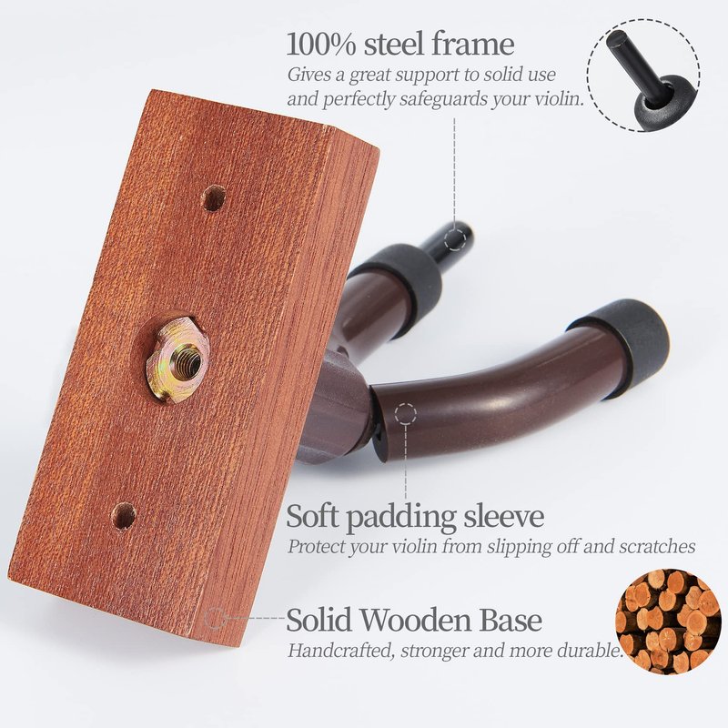 - STURDY WOODEN BASE - The base of our violin hanger is made of strong and durable mahogany wood to keep your violin safely hold and perfectly displayed.