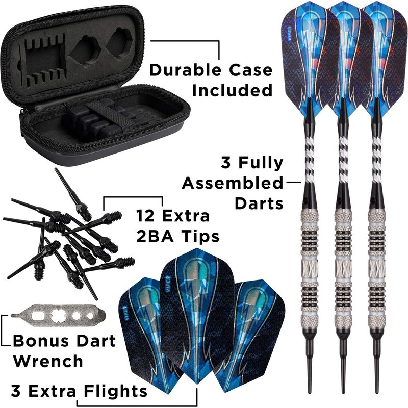 Viper Astro 80% Tungsten Soft Tip Darts with Storage/Travel Case, Black Rings, 16 Grams