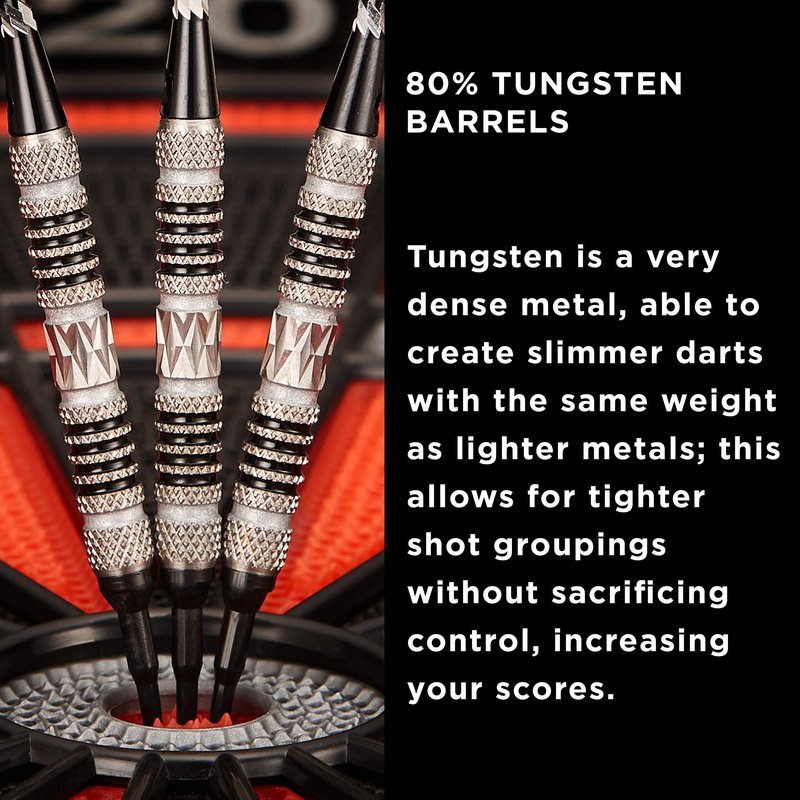 - 80% Tungsten Barrels have a slim profile, allowing for tighter grouping of shots which increase scoring
