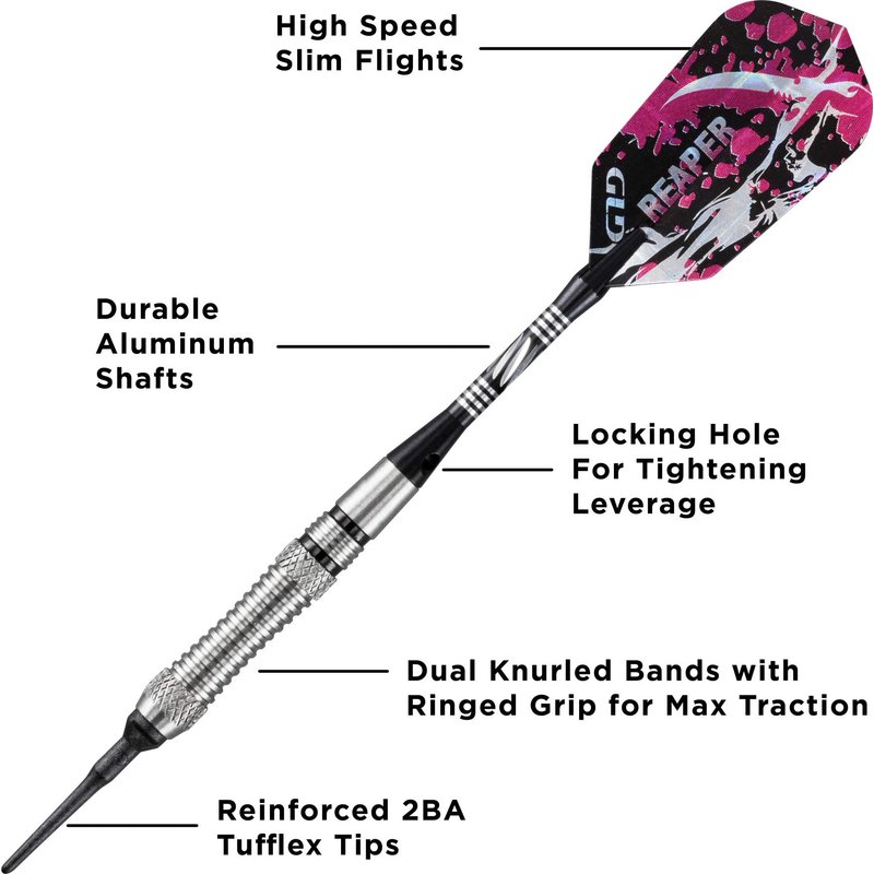 Viper Grim Reaper 80% Tungsten Soft Tip Darts with Storage/Travel Case, Fine Knurling, 18 Grams
