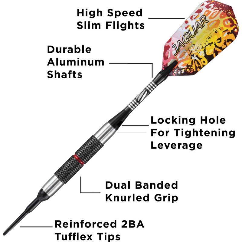 Viper Jaguar 80% Tungsten Soft Tip Darts with Storage/Travel Case, Coarse Knurling, 18 Grams