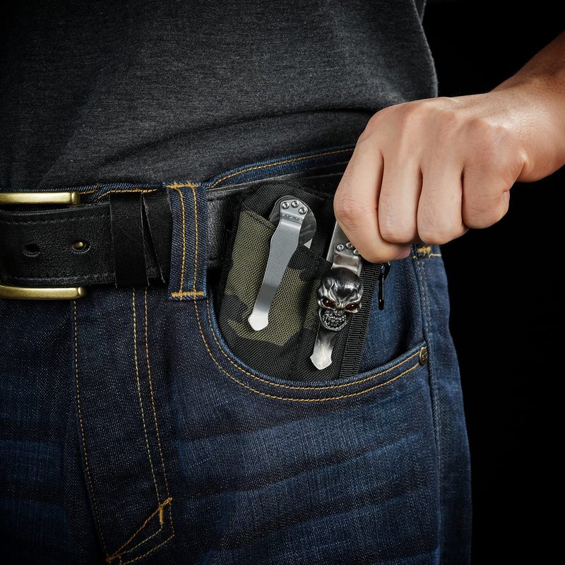 - Reserved Keychain Loop - can be attached to a keychain to hang on a belt, on a backpack, or around the neck through a para-cord. The MOLLE plug-in design can hold tools with pocket clips, which greatly saves space.