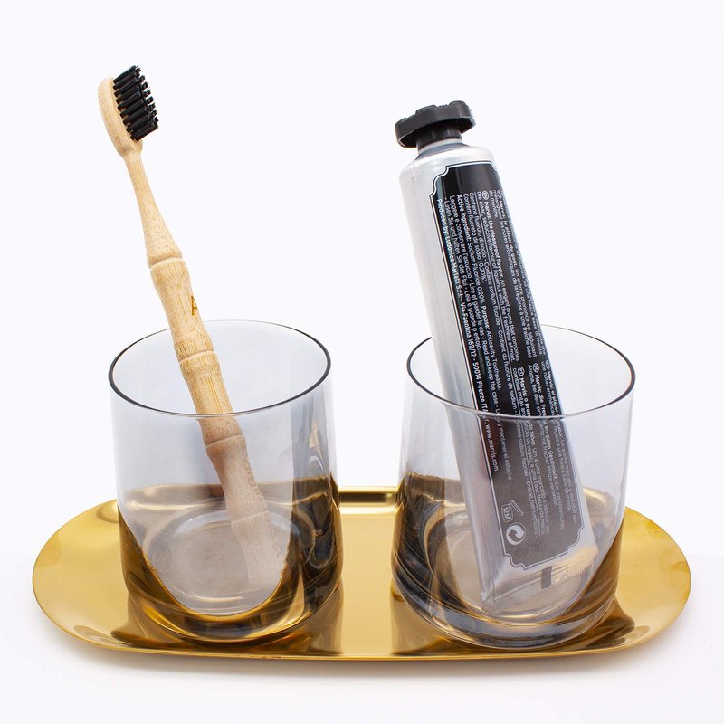 - Charcoal Toothbrush: The toothbrush has special charcoal bristles that help whiten teeth and freshen breath.