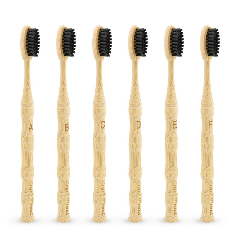 Virgin Forest Bamboo Toothbrush, Vegan Natural ECO Friendly Wood Toothbrushes, Biodegradable Organic Charcoal Tooth Brush, Pack of 6