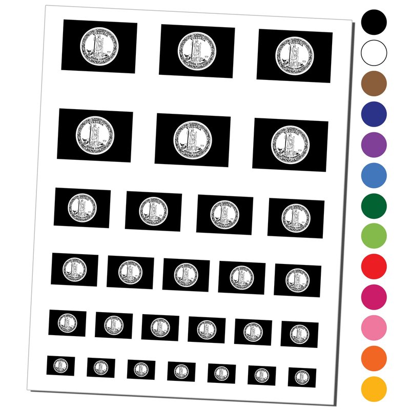 Virginia State Flag Temporary Tattoo Water Resistant Fake Body Art Set Collection - Black (One Sheet)
