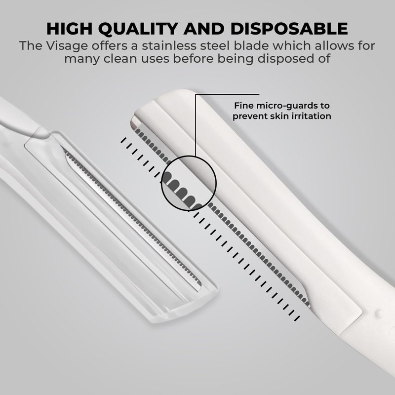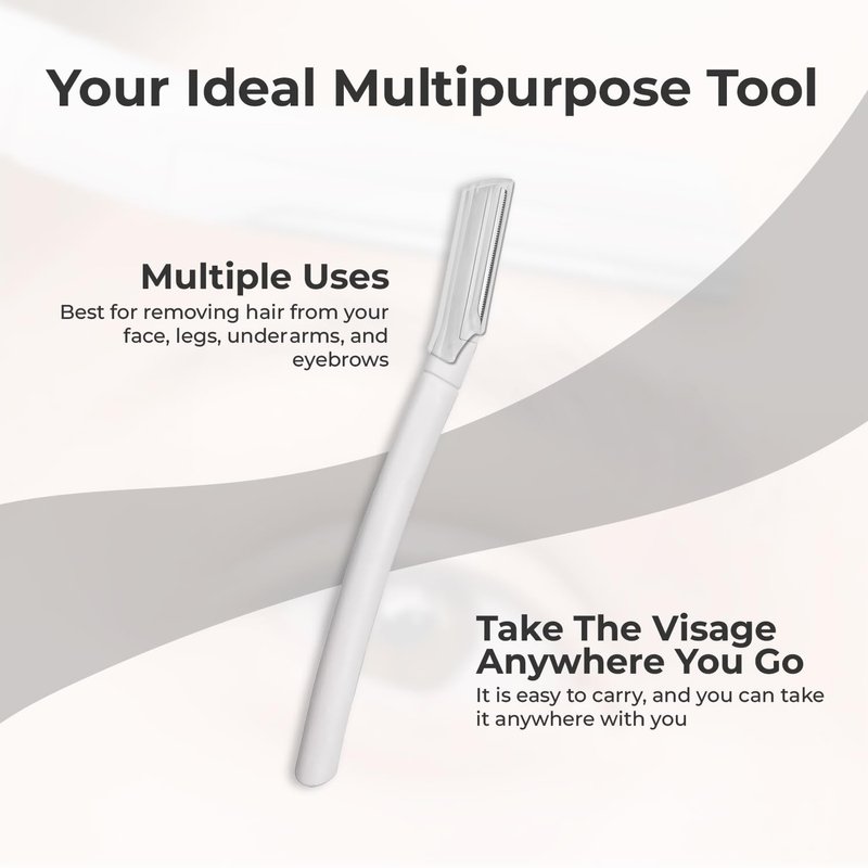 - Effortless Touch-Ups – The Visage razor is a multifunctional beauty tool perfect for shaping eyebrows, removing peach fuzz or beard hairs, and gently exfoliating the skin for a smooth, radiant finish.