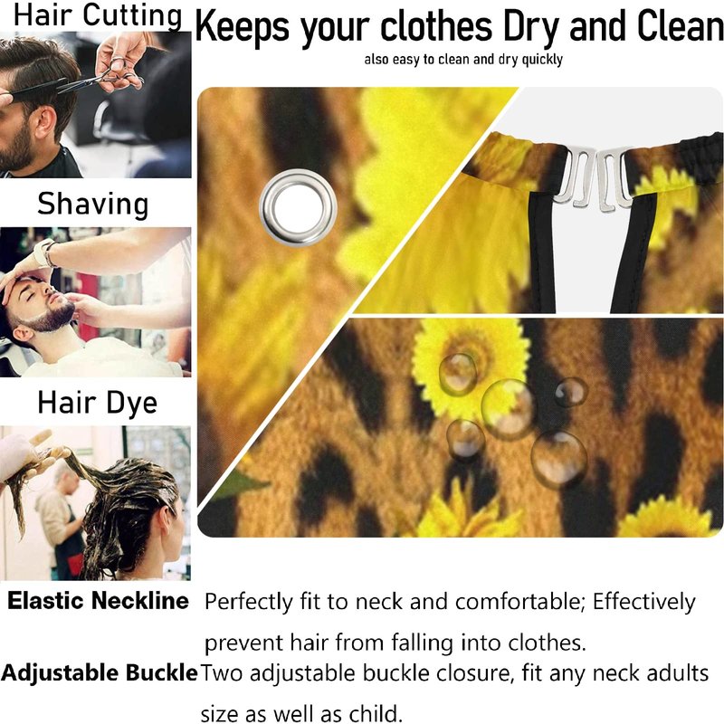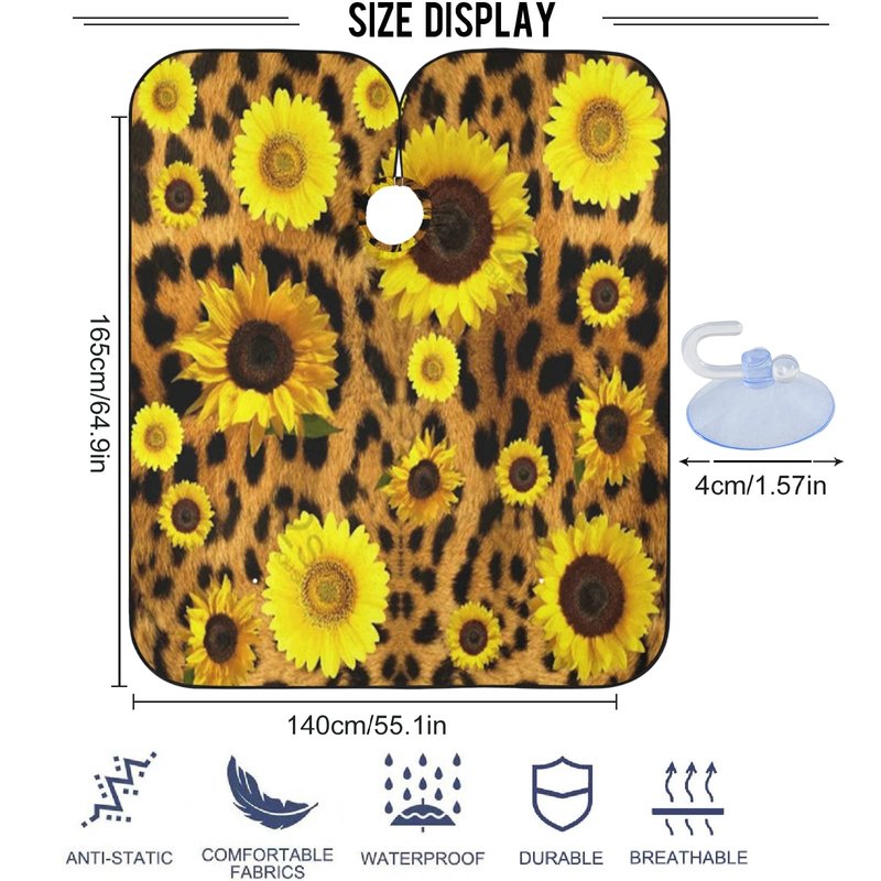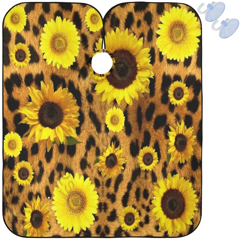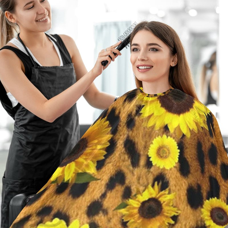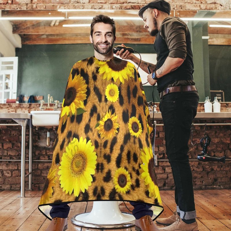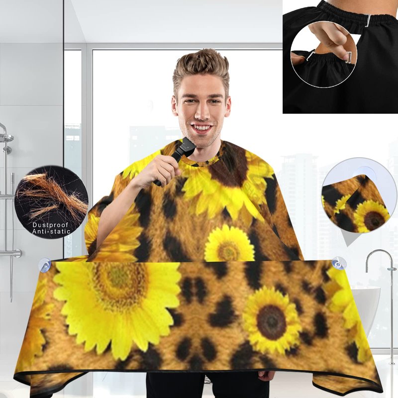 visesunny Barber Cape Classic Sunflower Leopard Print Polyester Hair Cutting Salon Cape Apron Anti-Static Haircut Water-Resistant Shaving Cloth Beard Shaving Bib Hairdressing Cape