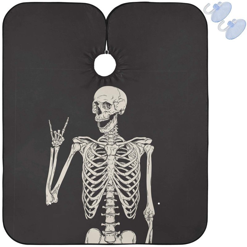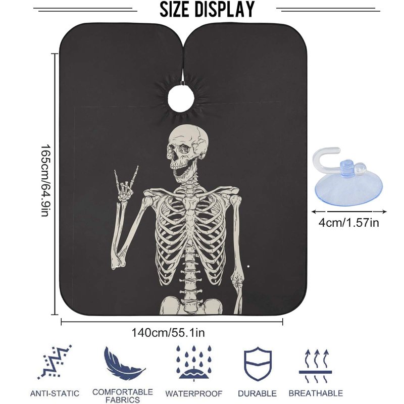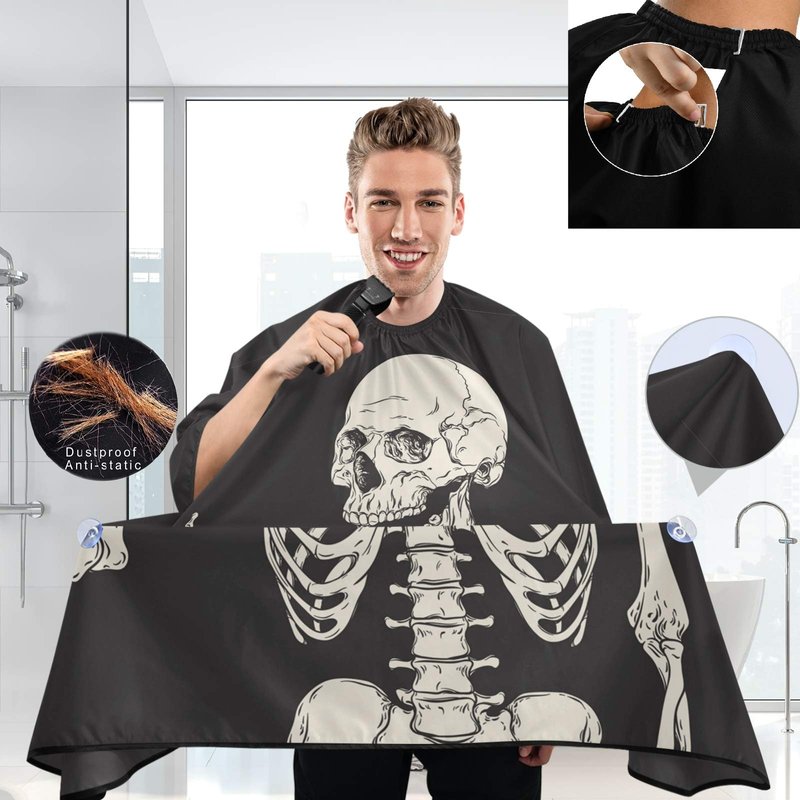 visesunny Barber Cape Funny Human Skeleton Polyester Hair Cutting Salon Cape Apron Anti-Static Haircut Water-Resistant Shaving Cloth Beard Shaving Bib Hairdressing Cape