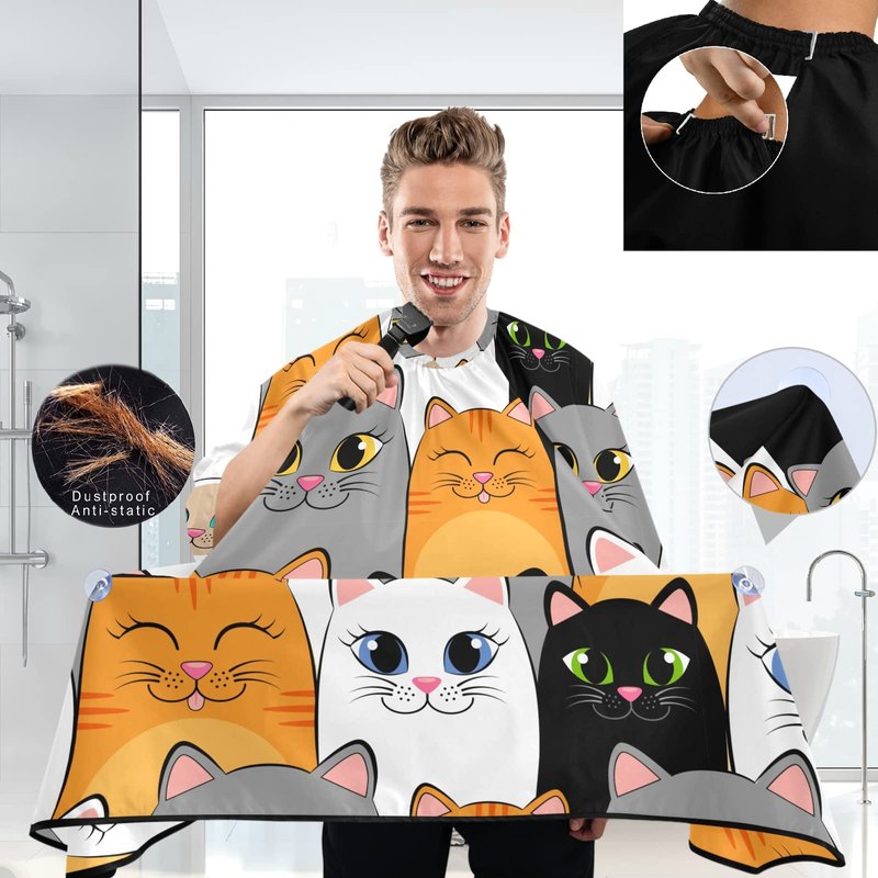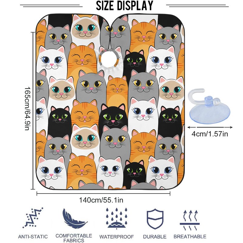 visesunny Barber Cape Gray White Cat Animal Polyester Hair Cutting Salon Cape Apron Anti-Static Haircut Water-Resistant Shaving Cloth Beard Shaving Bib Hairdressing Cape