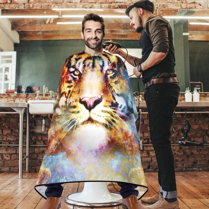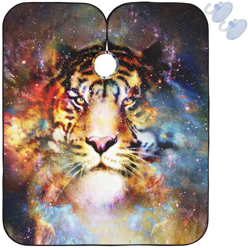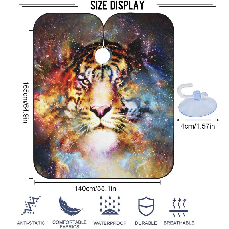 visesunny Tiger Galaxy 3D Print Barber Cape Anti-Static Hair Cutting Cape with Snap Closure Professional Salon Polyester Cape Barber Water-Resistant Hairdressing Cape Adjustable Snap for Hairstylists