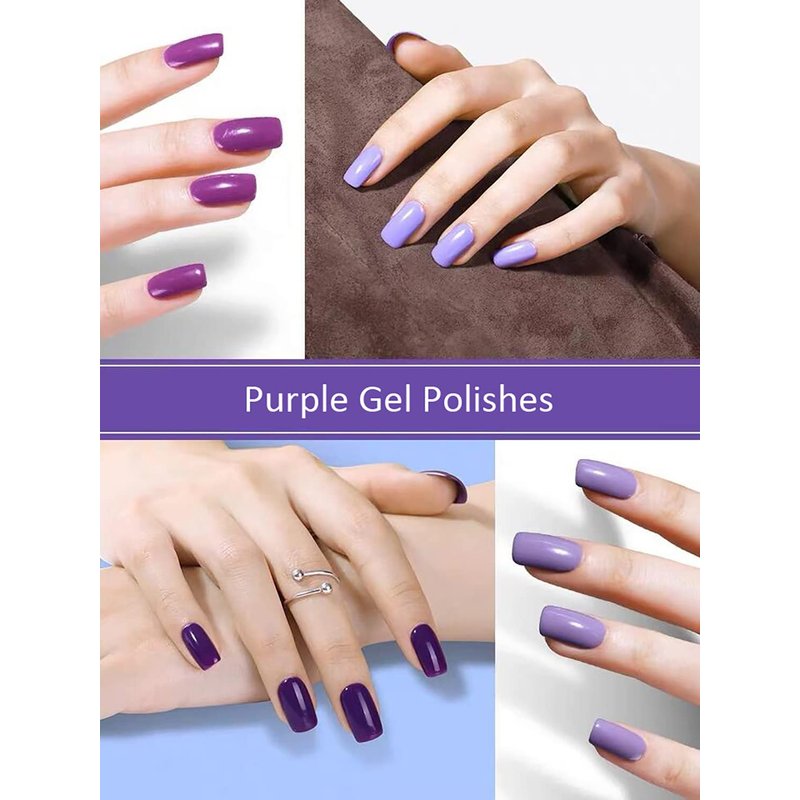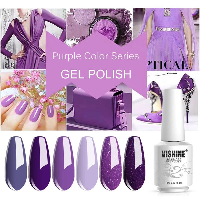 Vishine 6PCS Purple Glitter Nail Polish Gel UV LED Soak Off Nail Art Kit Gorgeous Manicure Collection Gift Set 8ml