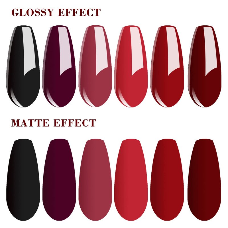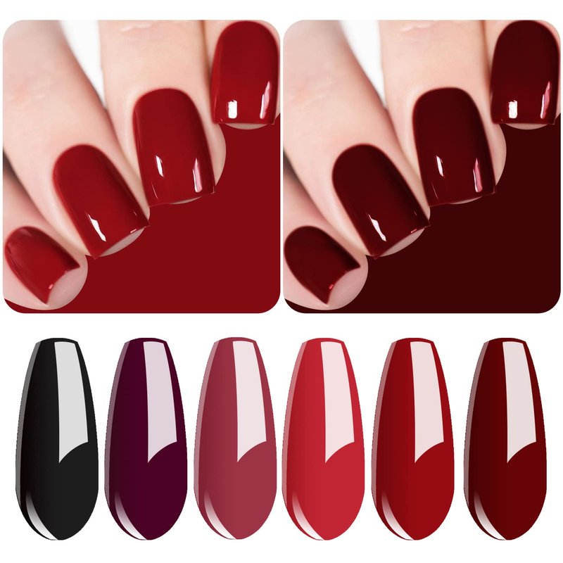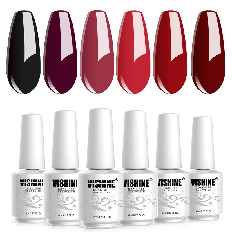 Vishine Classic Red Gel Nail Polish Set, Dark Red Burgundy Black Purple Gel Polish Kit Soak Off UV Nail Lamp LED Gel Nail Kits for Nail Art Design Home DIY Manicure Nail Salon Varnish 8ml