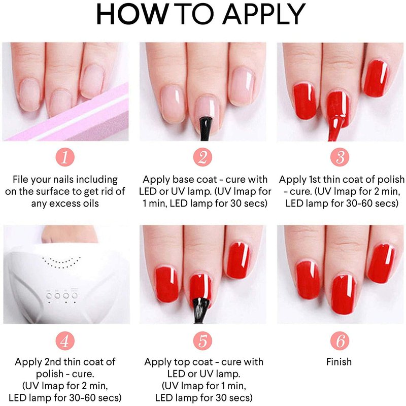 - HIGH QUALITY - Long lasting and good tenacity that easy to apply, with proper application, it can last up to 14 to 21 days. Color resistant, flexible and shiny resistant to any test, create a high shine, luxury manicure with instant results.