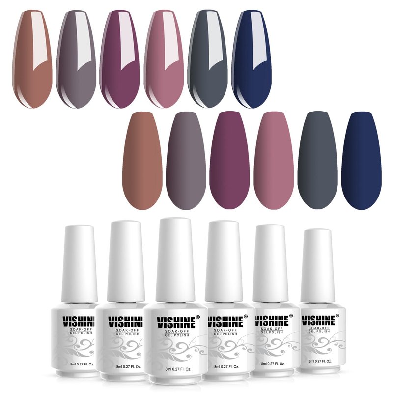 Vishine Fall-Winter Gel Nail Polish Set - 6 Colors Grey Purple Gel Polish Kit Nail Gel Polish Set, Soak Off UV LED Nail Gel Required, 8ml Each Bottle Gel Nail Art