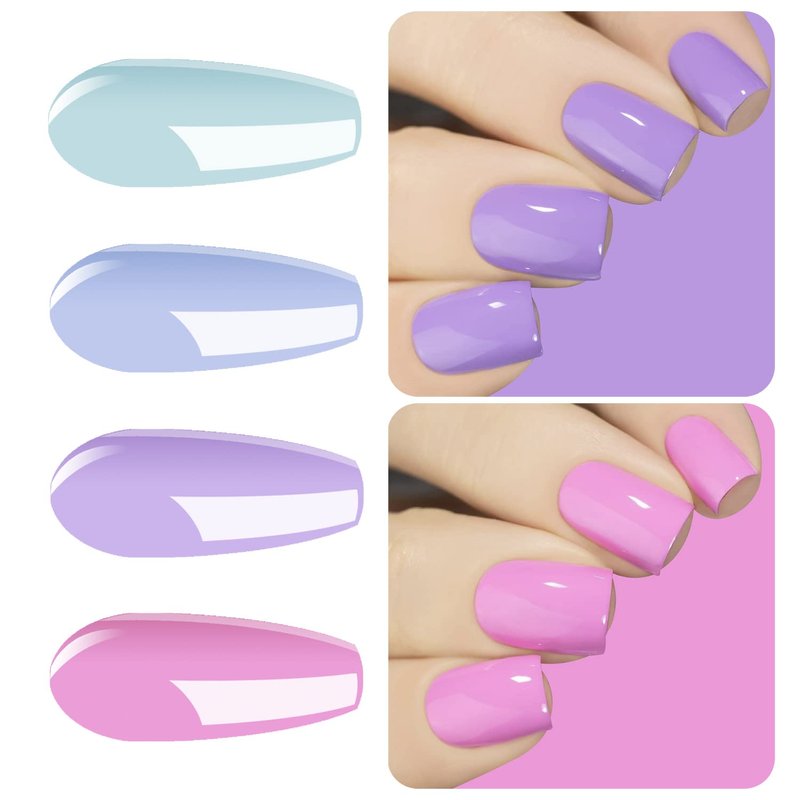 Vishine Gel Nail Polish Set - 4 Pastel Creme Color Spring Summer Baby Blue Lavande Lilac Violet Nail Gel Nail Art Long-lasting Salon DIY Manicure 8ml C030