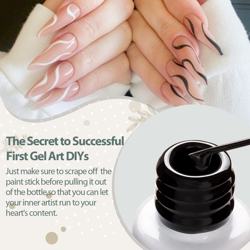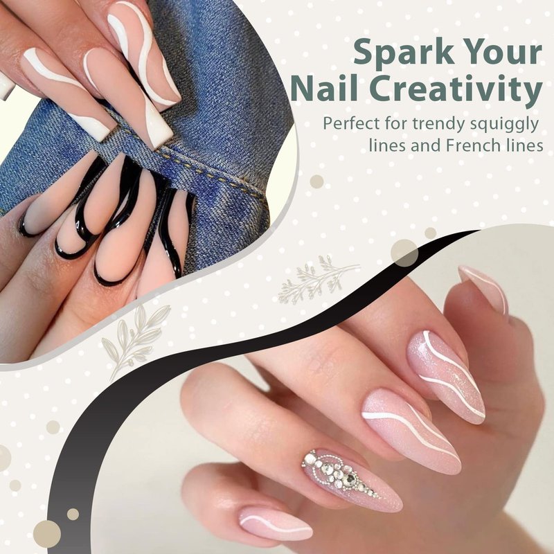 - Environmental & Healthy: The 2pcs classic black and white liner gel polish colors are made from 9 Toxin Free Ingredient which makes it safe and has low odor. No harsh ingredients or adhesives that lead to damaged nails.