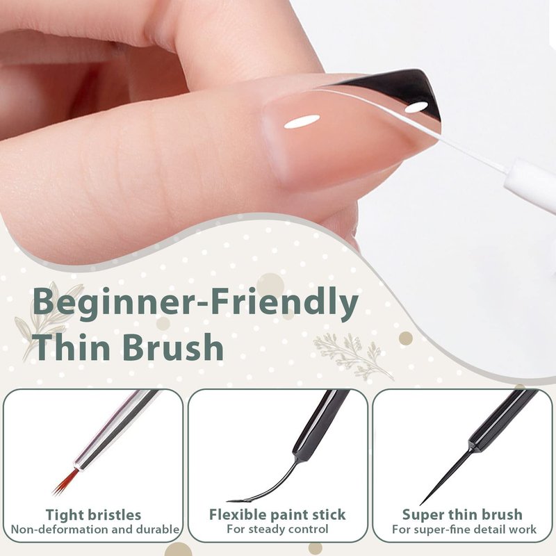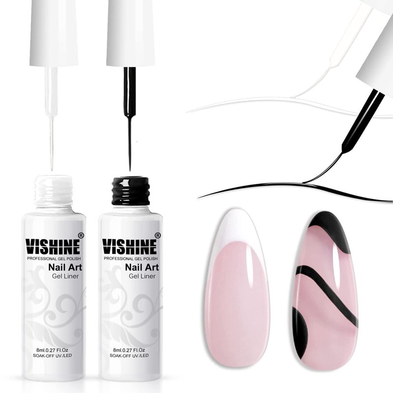 - Vishine Nail Art Polish Gel Liner Paint Set: Perfect for those trendy squiggly lines bstract painting that are so popular now… also works perfect for adding a French line! With the built thin brushes in, you don't have to get out your set of brushes for adding details and lines.