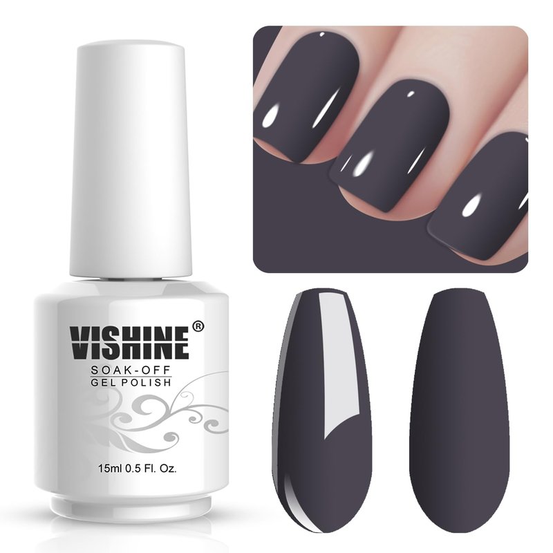 Vishine Gelpolish Lacquer Shiny Color Soak Off UV LED Gel Nail Polish Professional Manicure Dark Grey(1538)