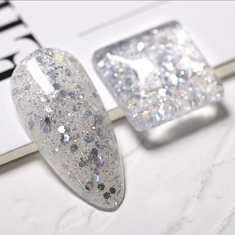 Vishine Gelpolish Long-lasting Gel Nail Polish Lacquer Shiny Color Soak Off UV LED Manicure Glitter Silver (1853)