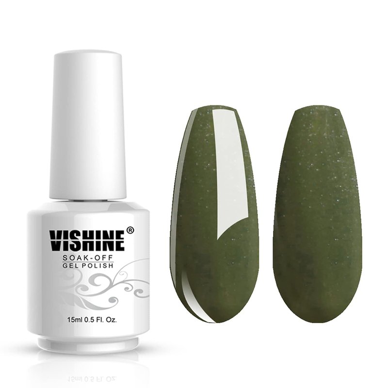 Vishine Gelpolish Manicure DIY Long-lasting Gel Nail Polish Lacquer Shiny Color UV LED Soak Off Glitter Pearl Olive(1025)