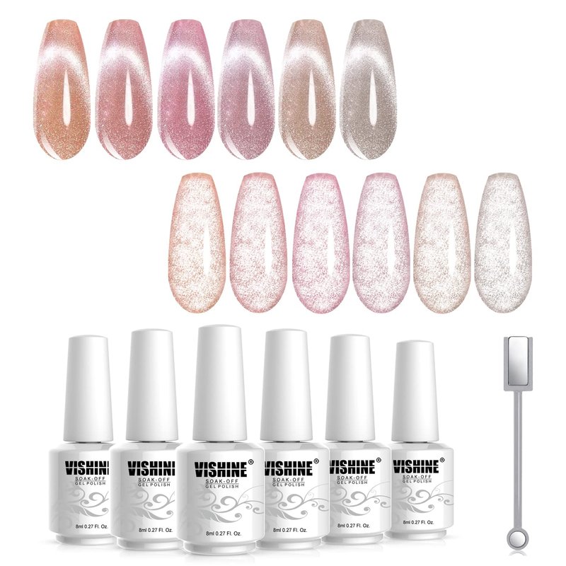 - PACKAGE INCLUDES: 6 gel polish colors of 0.27 fl.oz (8ml) each + cat eye magnet. Professional gel nail set to enjoy the nail art from the comfort of your own home!