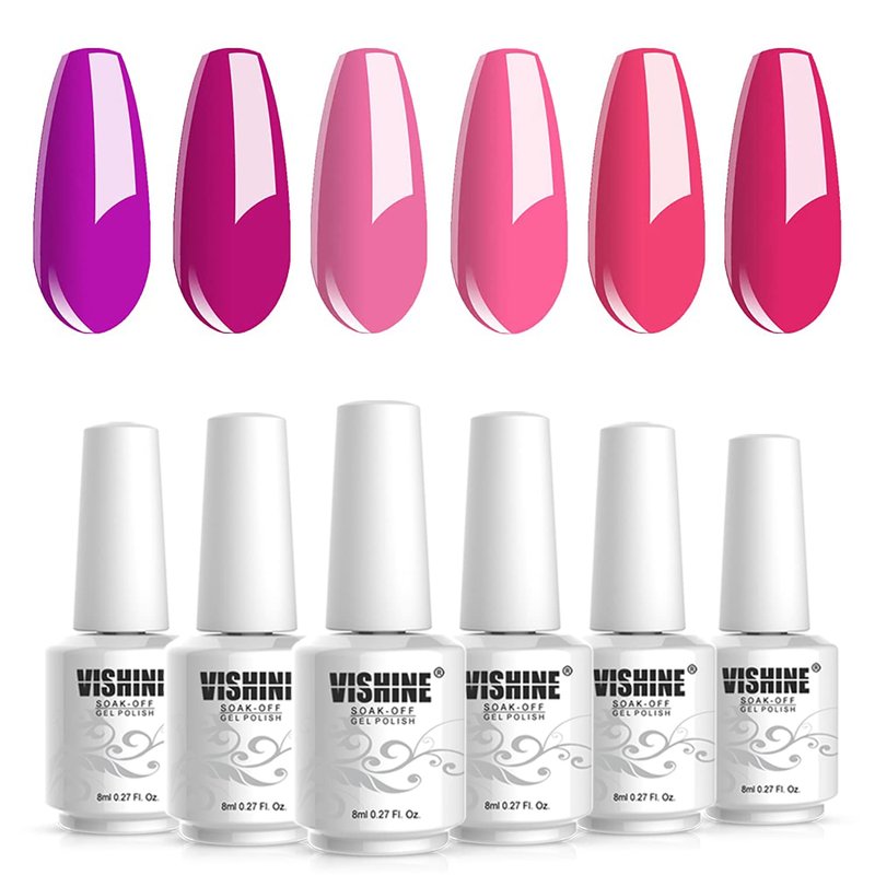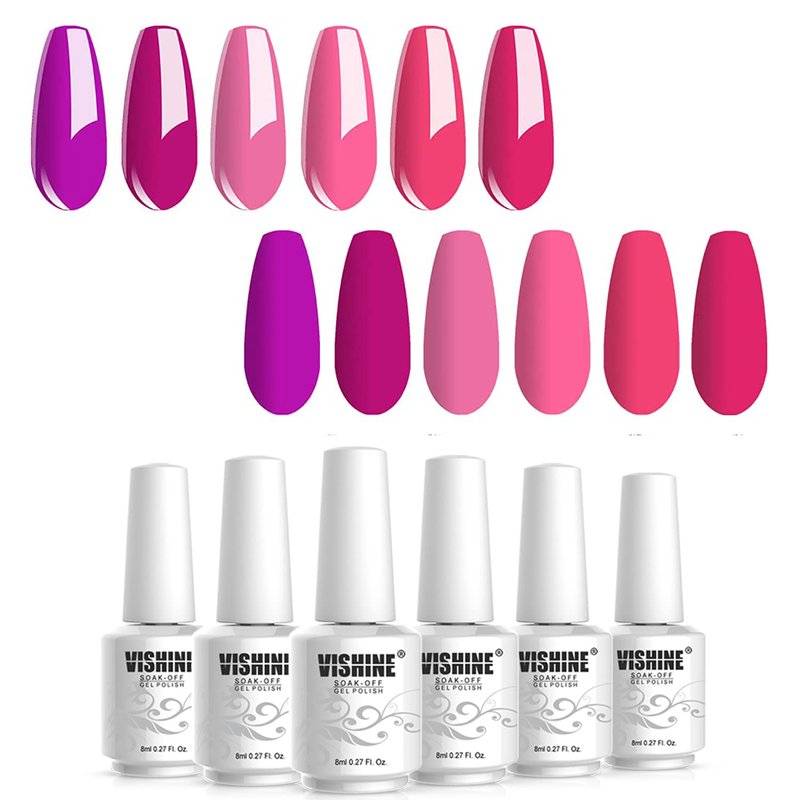 Vishine Hot Pink Fuchsia Gel Nail Polish Set - 6PCS Colors Magenta Purple Gel Polish, Soak Off Gel Polish Set Nail Art LED UV Nail Lamp Cured,8ml Each Bottle Nail Gel Kit Glamour Gifts