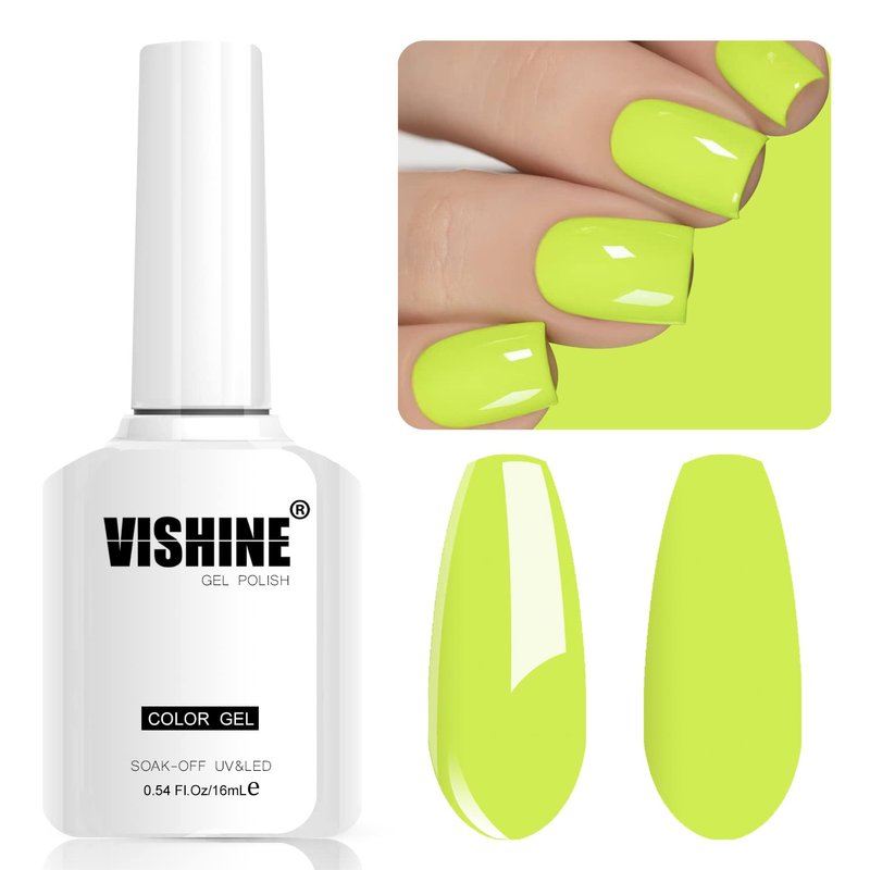 Vishine Neon Color Gel Nail Polish, 16ml Electrifying Neon Lemon-Lime Green Cream Gel Nail Soak Off UV LED Nail Lamp Gel Polish Nail Art Manicure Salon DIY Home 0.54Oz #M097
