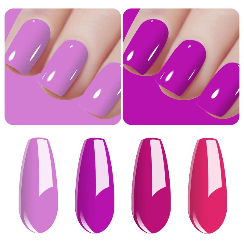 Vishine Pink Gel Nail Polish Set 4 Colors, Hot Pink Tones Sakura Spring Rose Purple Fushia Dark Pink All Seasons Soak Off Long Lasting Romantic Nail