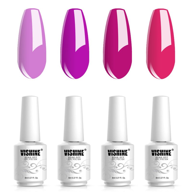 Vishine Pink Gel Nail Polish Set 4 Colors, Hot Pink Tones Sakura Spring Rose Purple Fushia Dark Pink All Seasons Soak Off Long Lasting Nail Art Design Salon Home Manicure Kit C027